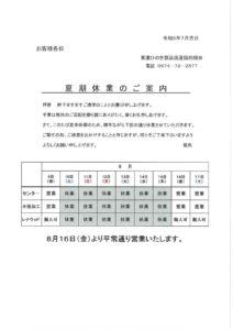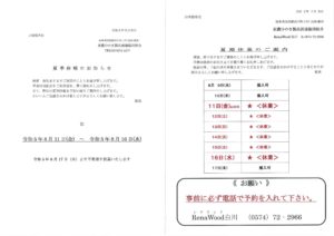 夏季休業日2023
