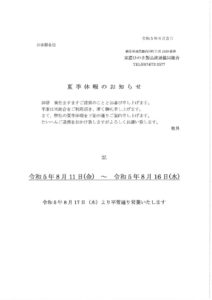2023夏季休業