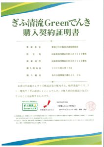 グリーン電気購入 契約証明書