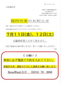 レナウッド休業案内